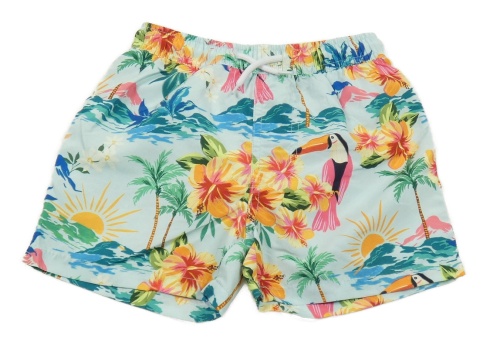 Světlemodro-barevné plážové kraťasy s květy a tukanem Matalan