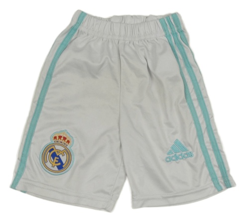 Bílé fotbalové kraťasy s erbem Real Madrid a logem Adidas