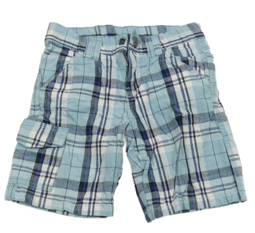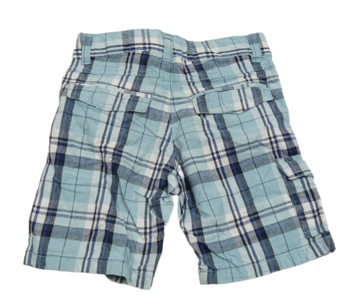 Světlemodro-bílo-tmavomodré kostkované plátěné kraťasy