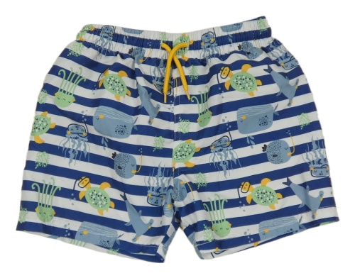 Modro-bílé pruhované plážové kraťasy s podmořským světem
