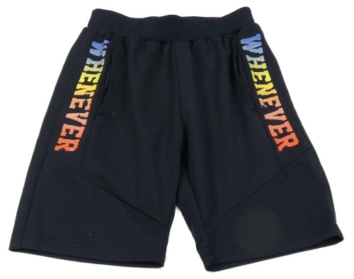 Tmavomodré sportovní teplákové kraťasy s nápisy