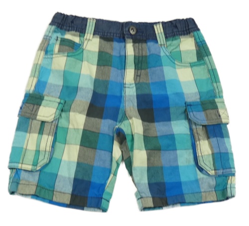 Modro-zelené kostkované plátěné cargo kraťasy Nutmeg