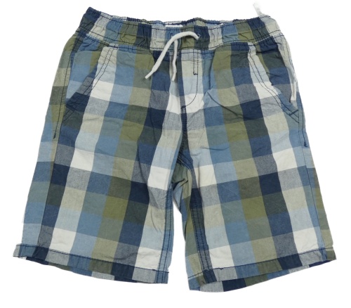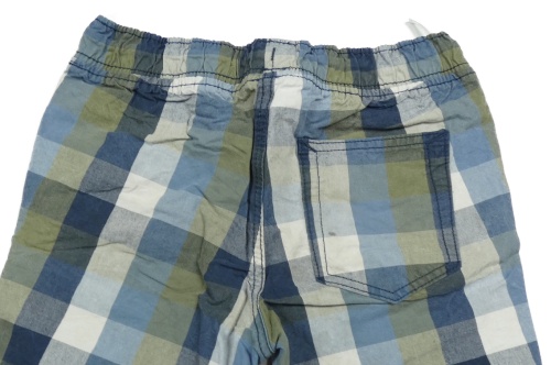 Tmavomodro-khaki-bílé kostkované plátěné kraťasy C&A