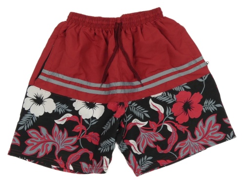 Vínovo-černé plážové kraťasy s kytičkami
