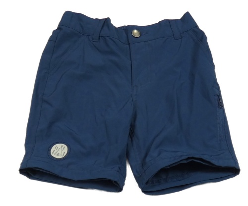 Tmavomodré šusťákové outdoorové kraťasy s nášivkou Alive