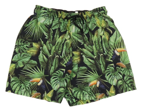 Zeleno-černé plážové kraťasy s listy a tukany H&M
