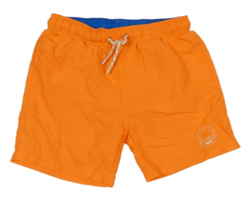 Křiklavě oranžové plážové kraťasy se znakem s nápisy FISH&CHIPS
