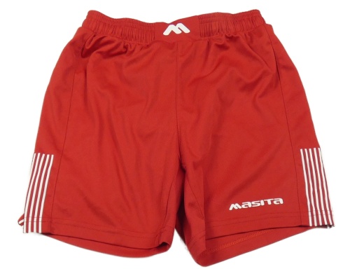 Červené sportovní kraťasy s nápisem