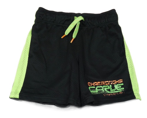 Černo-neonově zelené sportovní kraťasy s nápisem Yigga