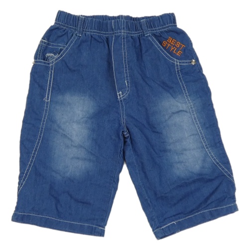 Modré kraťasy riflového vzhledu s nápisem