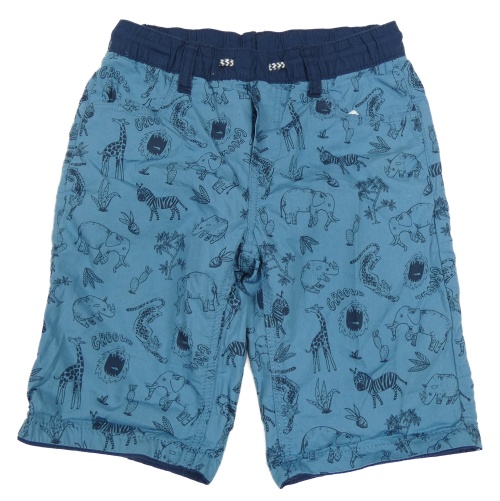 Světlemodro/tmavomodré oboustranné plátěné kraťasy se zvířátky