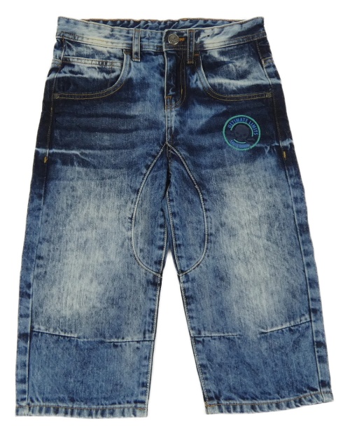 Tmavomodré plísňové capri rifle se znakem s lebkou Y.F.K.