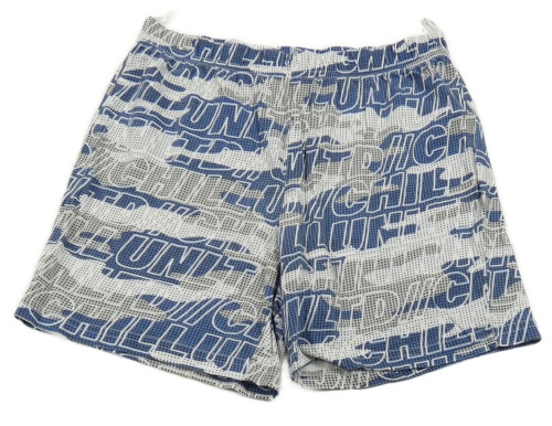 Modro-šedé vzorované bavlněné kraťasy s nápisy