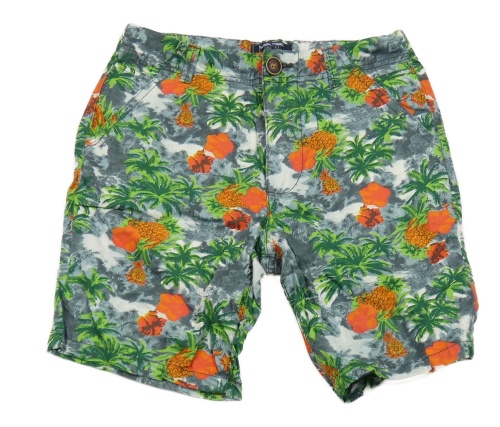 Šedo-bílo-zelené plátěné květované kraťasy s ananasy Next