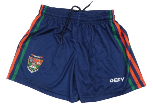 Tmavomodré sportovní kraťasy s pruhy a erbem