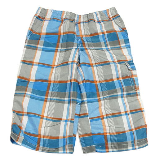 Modro-šedo-bílo-oranžové kostkované capri šusťákové kalhoty s kapsou HOT&SPICY