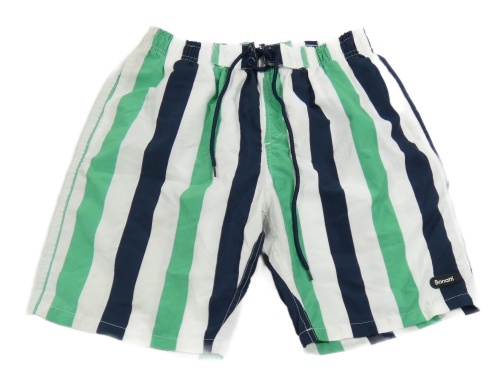 Bílo-zeleno-tmavomodré pruhované plážové kraťasy