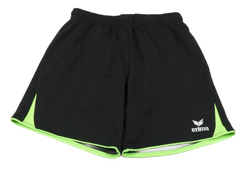 Černé sportovní kraťasy se zeleným lemem a logem erima