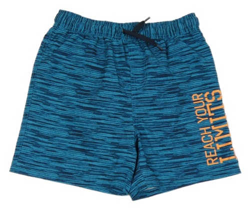 Modrozeleno-tmavomodré pruhované melírované plážové kraťasy s nápisy YIGGA