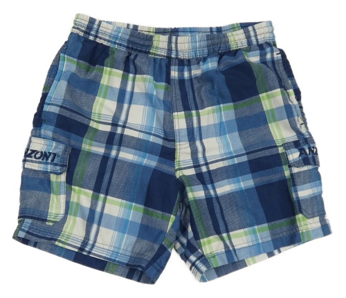 Tmaovmodro-bílo-zelené kostkované plážové cargo kraťasy