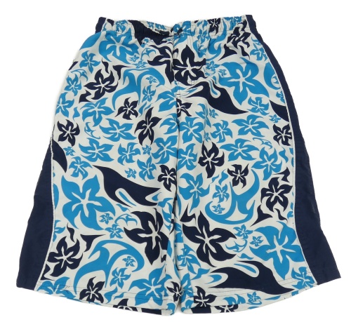 Modro-tmavomodré květované plážové kraťasy s pruhy