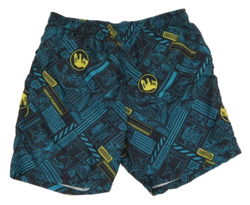 Černo-modro-žluté vzorované plážové kraťasy s diny - Jurský Svět