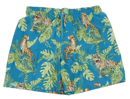 Modrozelené plážové kraťasy s tygry a listy H&M
