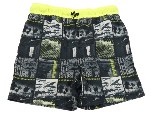 Černo-šedé plážové kraťasy s fotkami a neonovým pasem Yigga