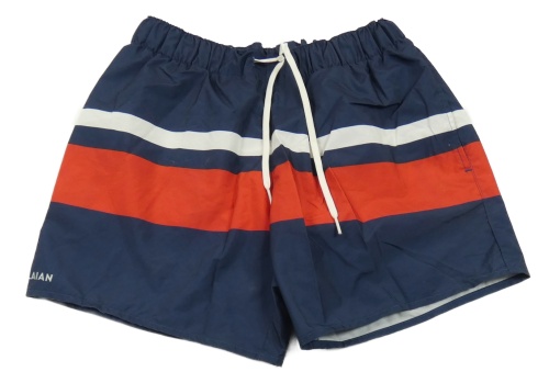 Tmavomodro-červeno-bílé plážové kraťasy s pruhy