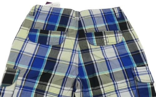 • Nové - safírovo-bílo-tmavomodro-světležluté kostkované cargo plátěné kraťasy Charles Vögele
