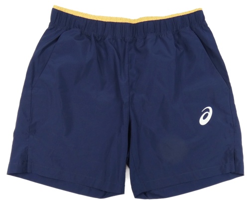 Tmavomodro-okrové šusťákové tenisové kraťasy asics