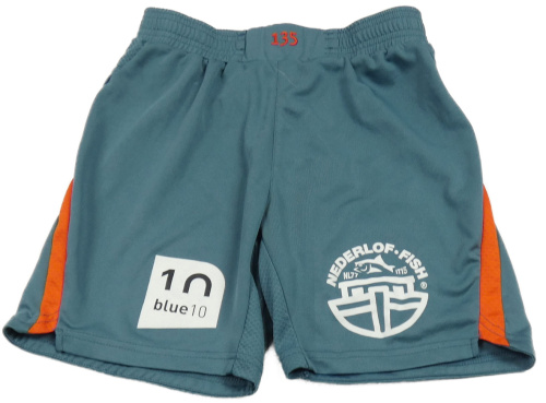 Modrošedé sportovní kraťasy s potiskem
