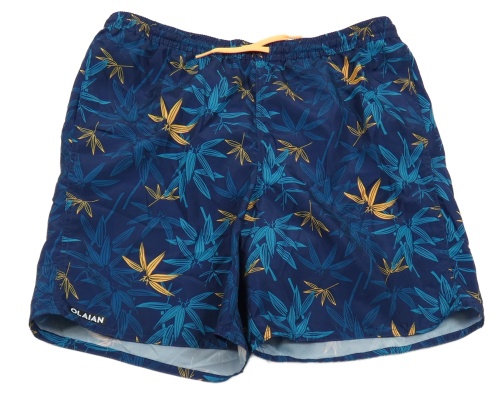 Tmavomodro-oranžové plážové kraťasy s listy Olaian