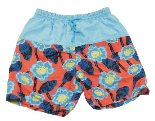 Modro-červené plážové kraťasy s květy