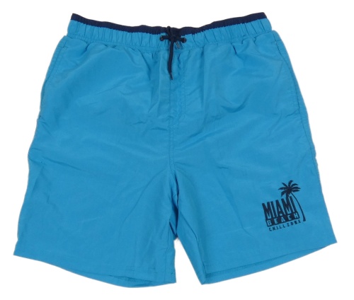 Modro-tmavomodré plážové kraťasy s nápisy a palmou Y.F.K.