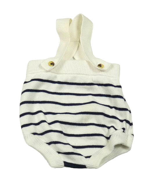 Bílo-černé pruhované pletené kraťasy s kšandami