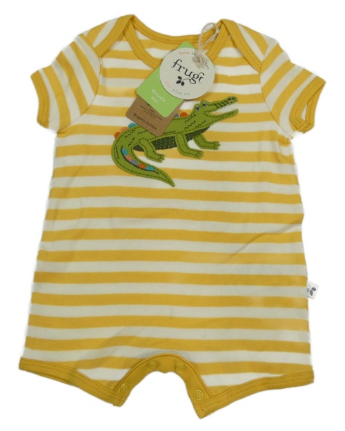 Nové - Žluto-bílý pruhovaný kraťasový overal s krokodýlem Frugi
