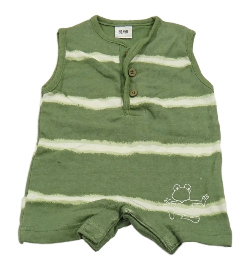 Khaki-smetanový pruhovaný kraťasový overal se žabičkou
