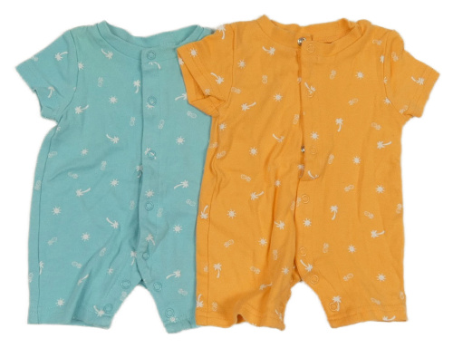 2x bavlněný kraťasový overal s palmami a sluníčky - oranžový + azurový