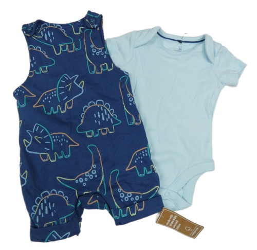 Nové- 2set- tmavomodrý kraťasový teplákový overal s dinosaury+ modré body Mothercare