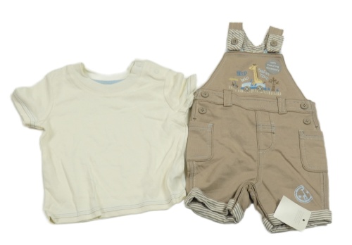 • Nové - 2Set - Béžovohnědé cargo teplákové laclové kraťasy se žirafou + smetanové tričko George