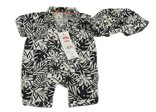 Nové - Světlešedo-černý vzorovaný plátěný kraťasový overal + klobouk F&F