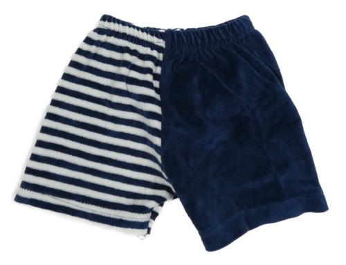 Tmavomodro-bílé sametové kraťasy s pruhy