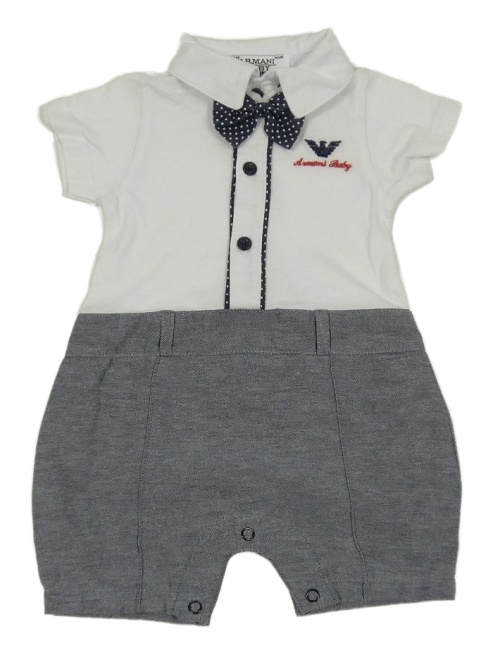 Bílo-modrý kraťasový overal s motýlkem Armani