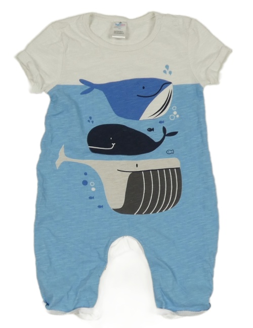 Modro-bílý bavlněný kraťasový overal s velrybami Topomini