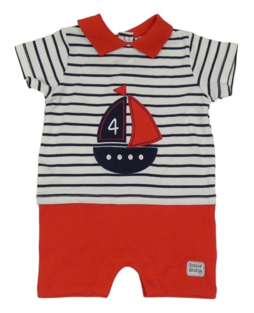 Pruhovano-červený kraťasový overal s plachetnicí Sailor