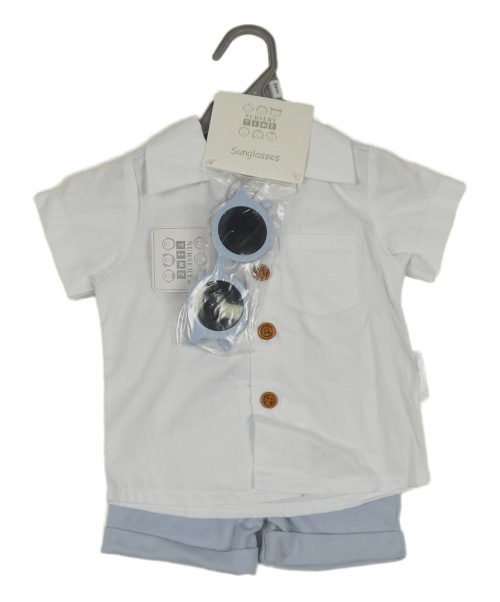 Nové - 3 set - bílá košile + světlemodré kraťasy + sluneční brýle
