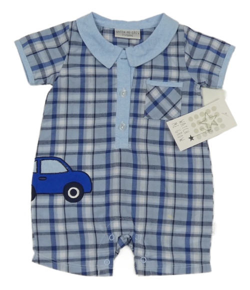 Nové - Světlemodro-modrý kostkovaný plátěný kraťasový overal Watch me grow