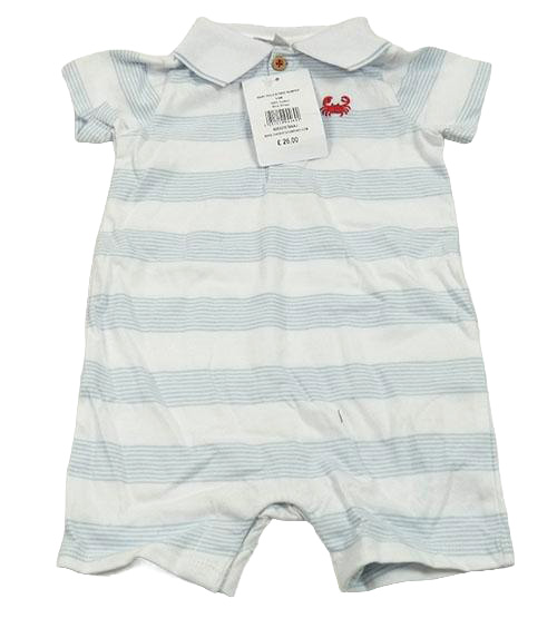 • Nové - Bílo-světlemodrý pruhovaný bavlněný polo kraťasový overal The Little White Company