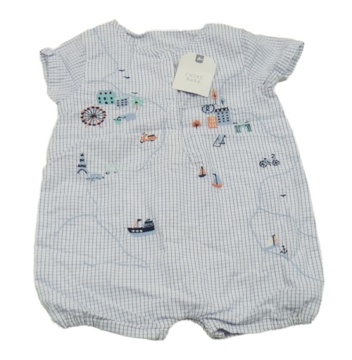 Nové - bílo-modrý kostičkovaný kraťasový overal s výšivkmai Next
